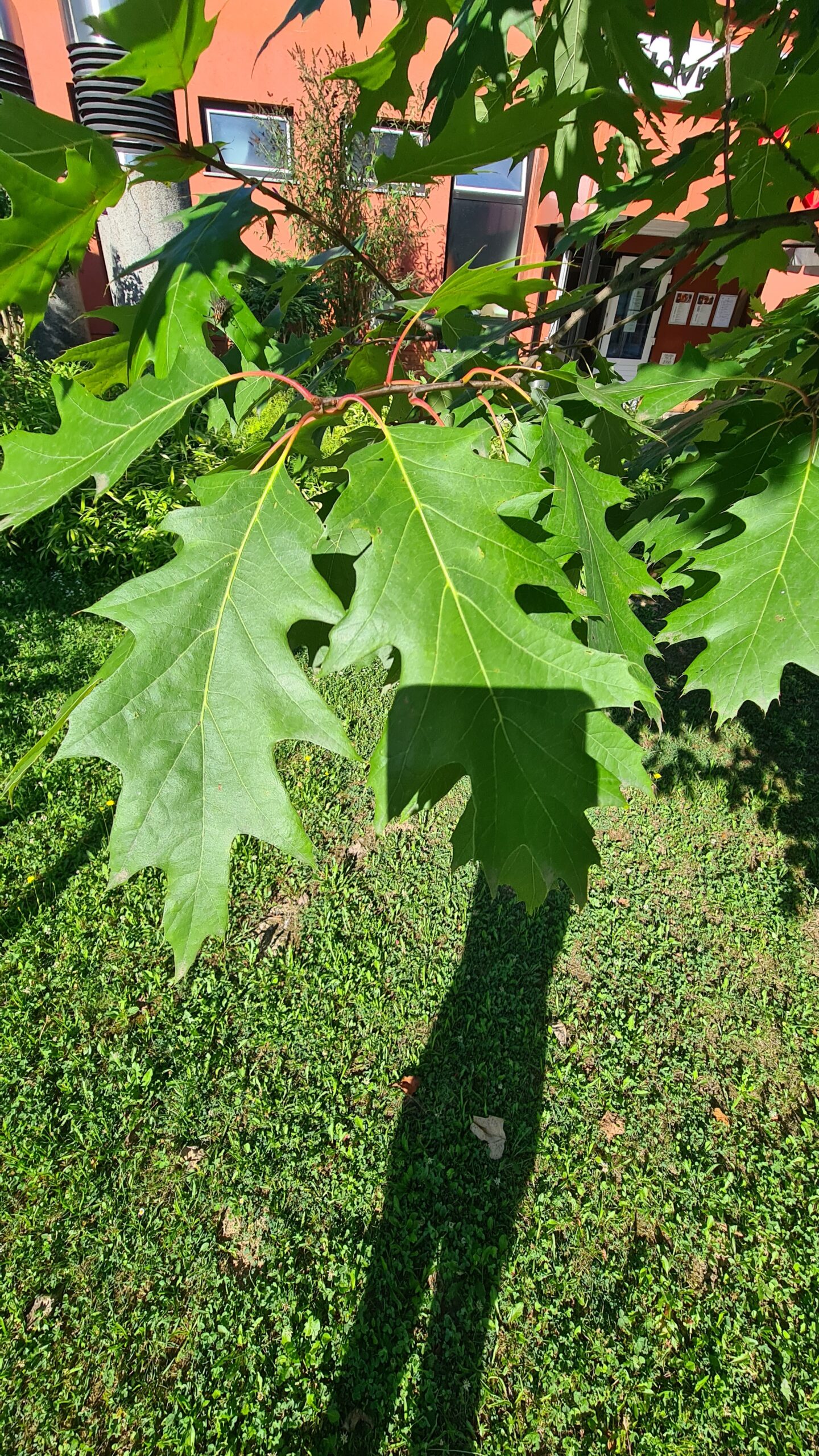 Jeseni se listi rdečega hrasta obarvajo v rdeče-oranžne odtenke, po čemer je tudi dobil svoje ime.